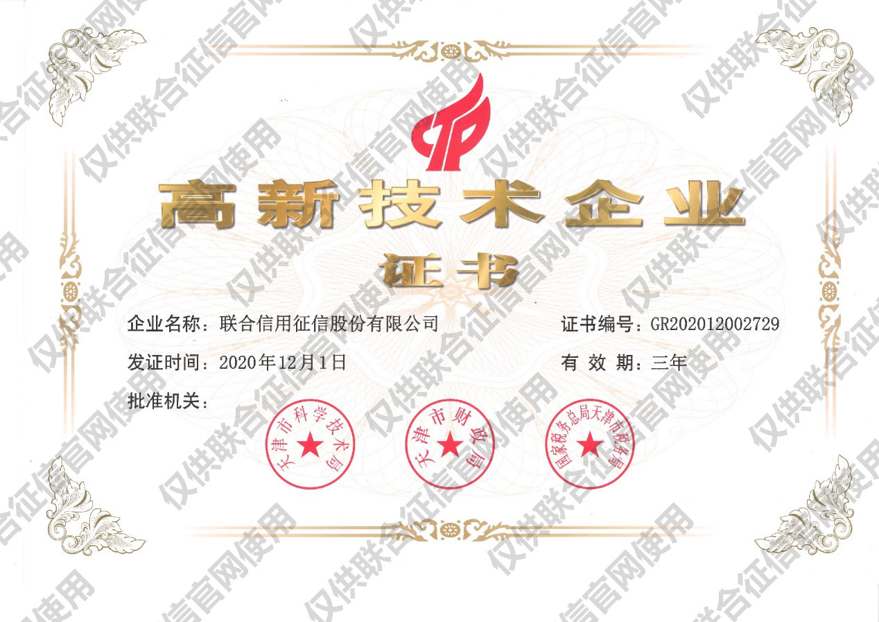 聯(lián)合征信獲評(píng)國(guó)家高新技術(shù)企業(yè)