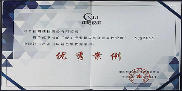 • 聯(lián)合信用征信股份有限公司入選2022年中國(guó)輕工業(yè)產(chǎn)業(yè)供應(yīng)鏈金融優(yōu)秀案例